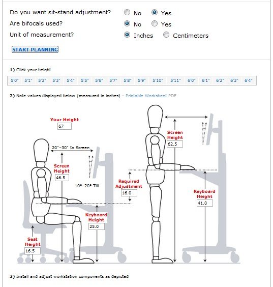 • When using a keyboard/mouse, your hands should be even or slightly lower than your elbows. An adjustable keyboard tray mounted under the desktop may be necessary.