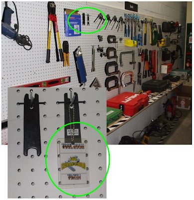 Recently, I observed an activity that is worth sharing. A common solution in 5S activities is the use of shadow board to organize and display tools. Many times these shadow boards may be at the point of use in a work space where tools and items don’t move far. In this case the shadow board technique was used in shared tool room for many trades. The issue that came up was how do you know a tool is missing rather than in use by a trade member. The team came up with idea of using a name token to hang on the shadow board. This name token would indicate that this individual is utilizing this tool.