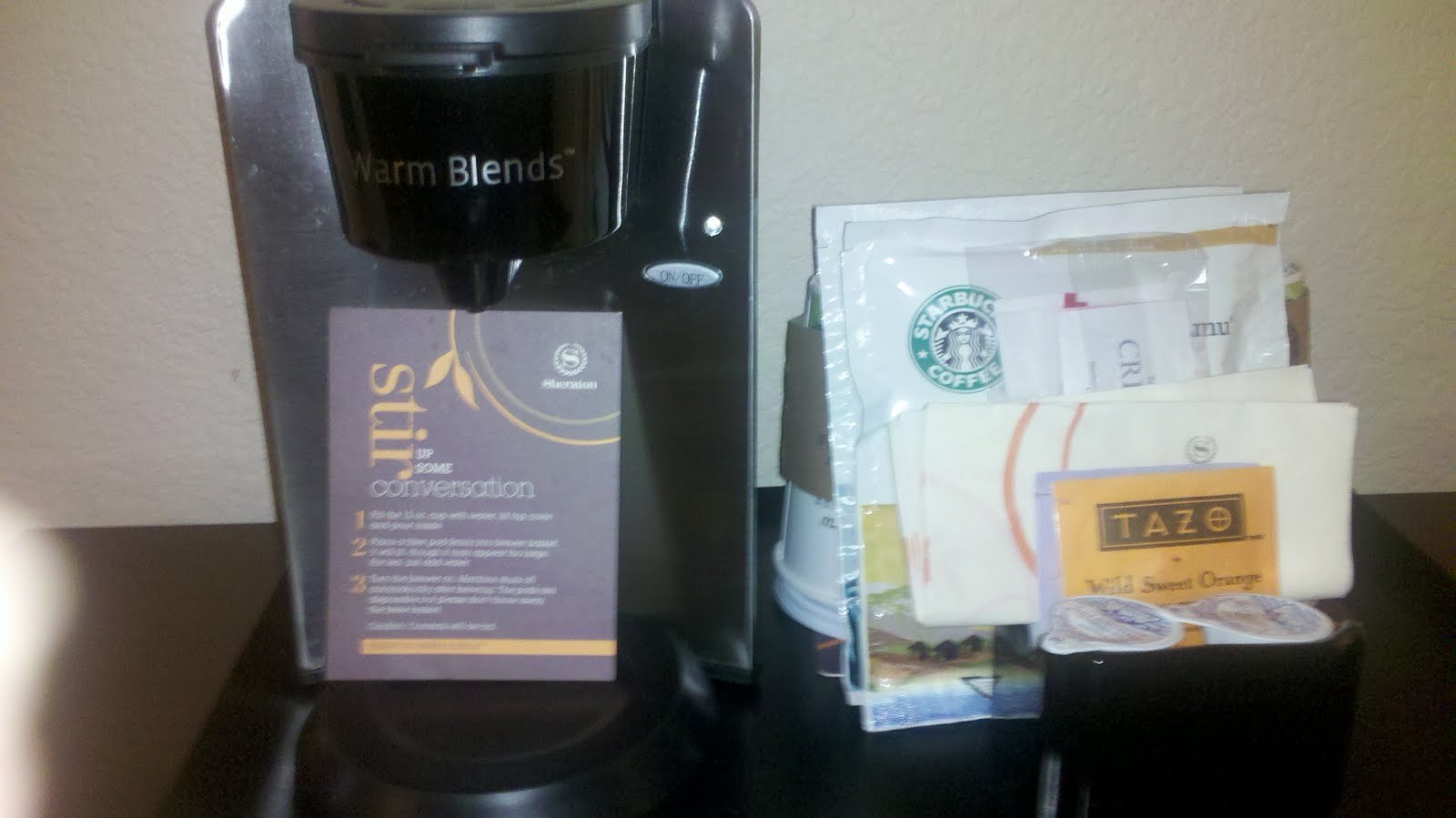 Here is an example of point of use storage and standard work instructions. Next to the coffee machine in the room are the coffee supplies. Everything you need is neatly stored in one place. All coffee machines are different so the hotel has printed and placed instructions for operating this machine locally to avoid confusion.