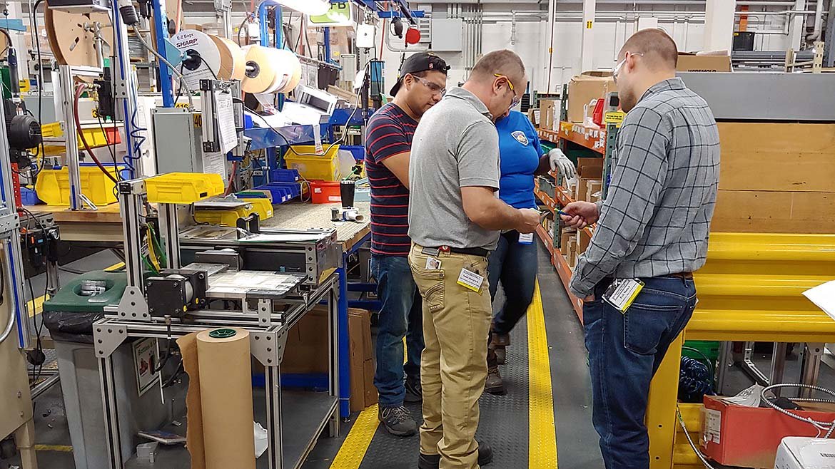 | Production team members discovering opportunities and trying solutions during a Kaizen. Image Source: Tim McMahon |