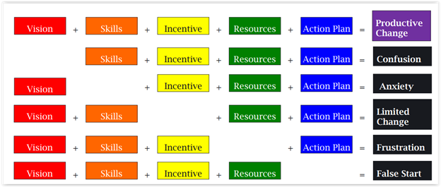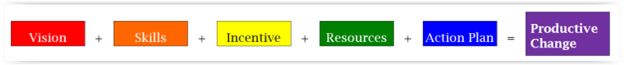 All these elements are needed for a productive change. If an element is missing