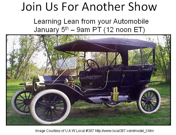 Stay tuned for a recording of this webinar to come shortly. In the mean time you can review our first webinar show on Learning Lean Through Making Coffee. Plan on joining us for our next webinar show after the New Year.