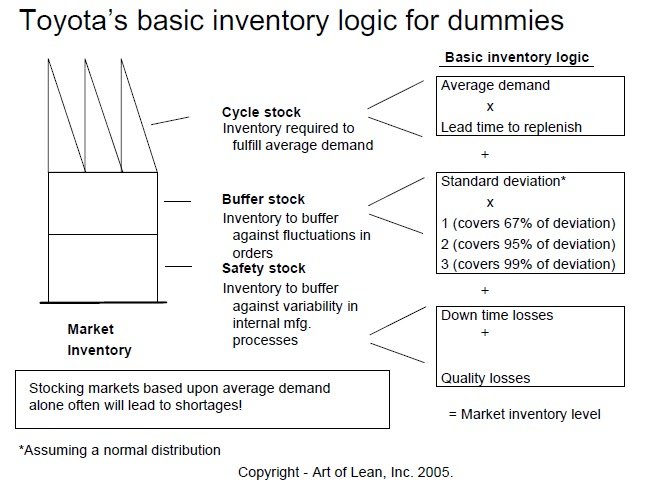 Art Smalley, President of the Art of Lean, has a great visual explaining the basics of Toyota’s inventory logic: