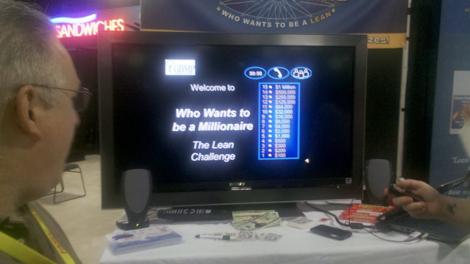 A couple weeks ago at EASTEC my friends at GBMP held a unique learning opportunity. The idea was to combine the format of the Millionaire game show with Lean thinking. This trivia game was complete with the help of 50:50, phone a friend, and the poll. They had several levels from beginner to advanced so everyone could participate in the fun.