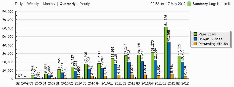 A Lean Journey Blog continues to grow as you see from this quarterly chart of visitors to the site: