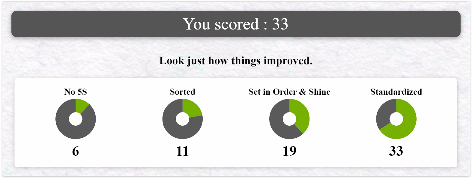 organization. The 5S Numbers Game is designed to illustrate how valuable 5S can